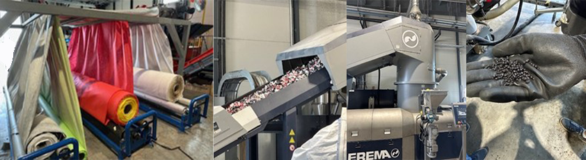 Onze partner liet ons weten dat het nu mogelijk is om op hoogwaardige wijze eigen restmaterialen te recyclen. Deze eerste machine kan zowel grote rollen als smalle stroken verwerken en zet deze om in grondstoffen die opnieuw kunnen worden gebruikt voor de productie van nieuwe folie.